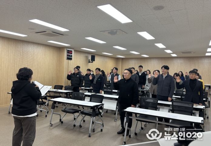 (뉴스인020 = 김성길 기자) 충남역사문화연구원(원장 장기승)은 12월 19일 전 직원을 대상으로 직장 내 성희롱 및 갑질 근절 선언식을 개최하고, 상호 존중과 배려를 바탕으로 한 건강한 조직문화 조성에 대한 실천 의지를 공식 선언했다.