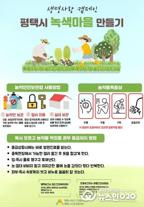 (뉴스인020 = 김성길 기자) 평택시 안중보건지소에서는 지난 15일부터 18일까지 농촌지역인 현덕면 덕목1리 등 5개소를 대상으로 농약 음독사고 예방을 위한 생명사랑 캠페인을 진행했다고 밝혔다.