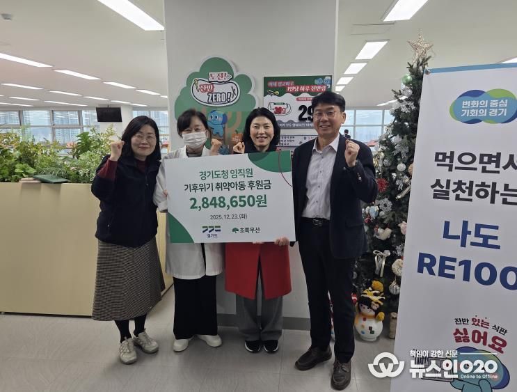서기천 경기도 총무과장은 “잔반을 줄이는 일상 속 실천이 탄소 감축을 넘어 기후 취약계층 지원으로 이어졌다는 점에서 의미가 크다”면서 “앞으로도 환경 보호와 나눔을 함께 실천하는 조직 문화를 확산해 나가겠다”고 말했다.