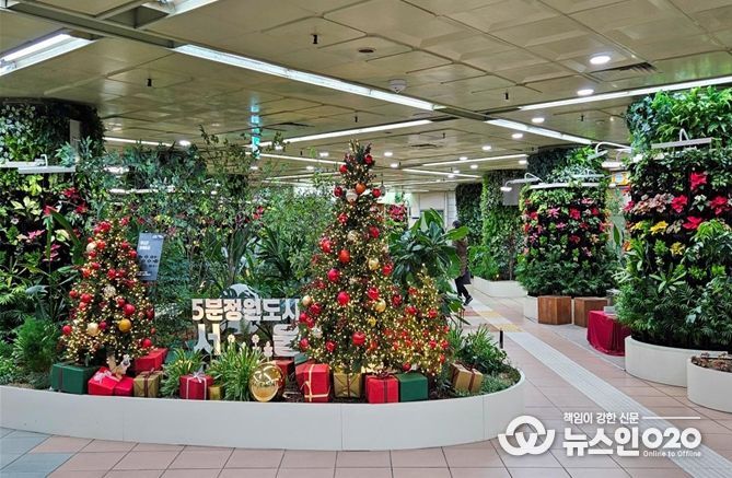 (뉴스인020 = 김성길 기자) 서울시는 연말을 맞아 지하철 역사 실내정원인 ‘서울 아래숲길’ 5곳에 계절의 감성을 더한 크리스마스 연출과 겨울 정원을 선보인다고 밝혔다.