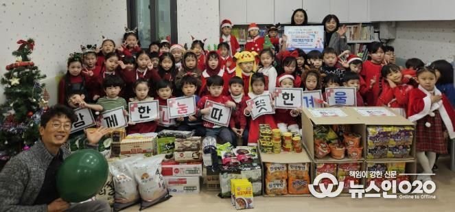 (뉴스인020 = 기자) 시립힐스테이트푸르지오수원 어린이집은 지난 23일, 수원시 팔달구 매교동에 연말을 맞아 관내 어려운 이웃들에게 원생들이 십시일반 모은 식료품 꾸러미를 후원했다.
