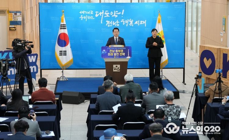 (뉴스인020 = 김성길 기자) 김영록 전라남지사는 24일 동부지역본부에서 열린 동부권 송년 기자 브리핑에서 2026년을 ‘동부권 100년 대도약의 원년’으로 선포하고 전남 미래 성장의 핵심 거점으로 육성하는 동부권 발전 전략을 발표했다.