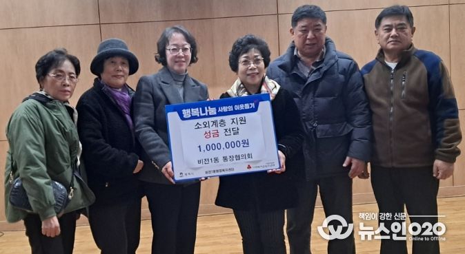 (뉴스인020 = 김성길 기자) 평택시 비전1동 통장협의회는 지난 17일, 연말을 맞아 관내 어려운 이웃을 위해 써달라며 이웃돕기 성금 100만 원을 비전1동 행정복지센터에 기부했다.