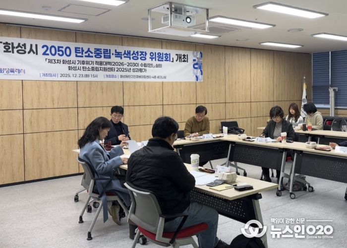 (뉴스인020 = 김성길 기자) 화성특례시는 지난 23일 화성동탄2인큐베이팅센터에서 ‘2050 탄소중립·녹색성장위원회’ 회의를 열고 '제3차 기후위기 적응대책(2026~2030)' 최종(안)과 탄소중립지원센터 2025년 성과 평가를 심의했다.