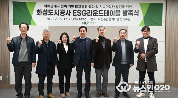 (뉴스인020 = 김성길 기자) 화성도시공사는 23일 '화성도시공사 ESG 라운드테이블 발족식'을 열고, ESG(환경·사회·지배구조) 경영을 체계적으로 추진하기 위한 협력 기반을 마련했다.
