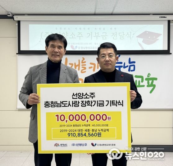 황환택 충남평생교육진흥원장은“지속적인 후원은 학생들에게 실질적인 희망과 동기부여가 된다”며“지역 인재 양성을 위해 변함없는 관심을 보내주신 선양소주에 깊이 감사드린다”고 밝혔다.