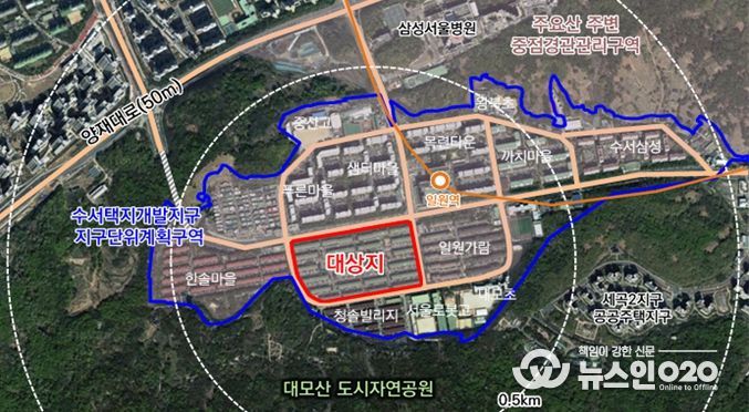 상록수아파트는 1993년에 준공된 대모산 자락에 위치한 노후단지로, 이번 정비계획을 통해 용도지역이 제2종일반주거지역(7층이하)에서 제2종일반주거지역으로 변경되고, 최고 25층 공동주택 1,126세대 규모(임대 74세대 포함)의 자연경관과 어우러지는 주거단지로 조성된다.