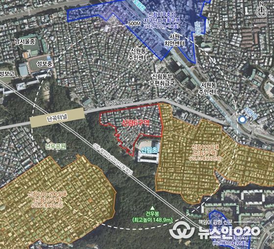 (뉴스인020 = 김성길 기자) 신림6구역 주택공급이 본격화되며, 인접한 신림5구역과 함께 삼성산 자락 노후 주거지를 재편하는 약 5천 세대 내외 규모의 신흥 주거지 조성이 가시화된다.