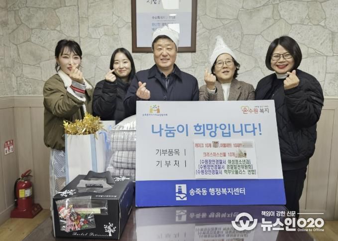 (뉴스인020 = 기자) 수원시 장안구 송죽동은 지난 24일 장안경찰서로부터 연말을 맞아 지역 내 조손가정 등 취약계층을 위한 후원 물품을 기부했다고 밝혔다.