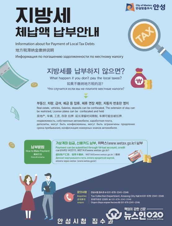 (뉴스인020 = 김성길 기자) 안성시는 외국인 근로자의 지방세 체납액 징수를 위해 외국인 전용보험 압류를 추진한다고 밝혔다.