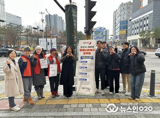 (뉴스인020 = 김성길 기자) 오산시 세마동행정복지센터는 지난 24일 세마역 인근 유동인구 밀집 지역에서 세마동 지역사회보장협의체 위원, 명예사회복지공무원, 동 직원들과 함께 ‘명예사회복지공무원 제도 홍보 캠페인’을 실시했다고 밝혔다.