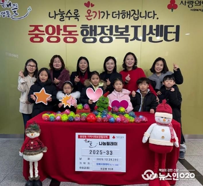 백경희 중앙동장은 “작은 손으로 큰 나눔을 실천해 준 함께자람센터 아이들과 지도교사분들께 감사드린다”며 “전해주신 소중한 마음이 이웃들에게 따뜻한 응원과 희망으로 전달될 수 있도록 하겠다”고 말했다.