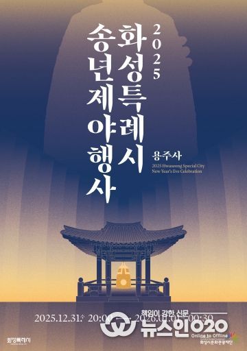 (뉴스인020 = 김성길 기자) (재)화성시문화관광재단은 시민과 함께 2025년을 마무리하고 2026년을 맞이하는 '2025 화성특례시 송년 제야행사'를 오는 12월 31일 수요일 오후 8시부터 용주사 일원에서 개최한다.