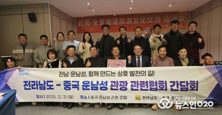(뉴스인020 = 김성길 기자) 전라남도는 중국 운남성 곤명 호텔에서 운남성 지역 여행 관련 협회와 간담회를 최근 열어 전남의 다양한 관광 매력을 소개하며, ‘전남 사랑애 서포터즈’와 연계한 상호 교류방안을 논의했다고 밝혔다.