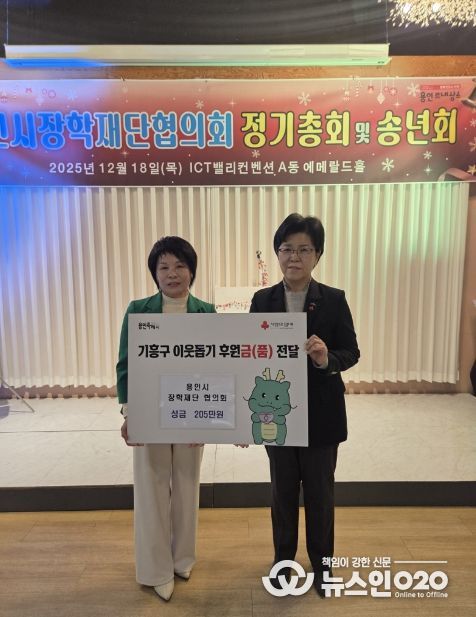 용인시장학재단협의회(대표 유미경)는 18일 연말 송년회를 진행하면서 기흥구에 이웃돕기 성금 205만원을 전달했다.