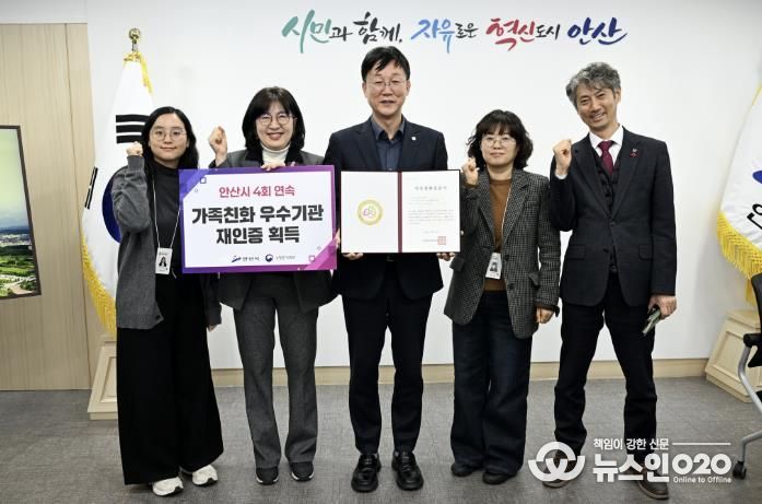 (뉴스인020 = 김성길 기자) 안산시는 올해 성평등가족부가 선정하는 ‘가족친화 우수기관 재인증’을 4회 연속 획득했다고 29일 밝혔다.