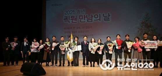 (뉴스인020 = 김성길 기자) 경상북도는 29일 도청 동락관에서 개최한 ‘2025년 송년 직원 만남의 날’행사에서 창의성과 전문성을 바탕으로, 적극적으로 업무를 처리한 2025년 하반기 적극행정 우수공무원 4명을 시상하고 격려하는 자리를 가졌다.