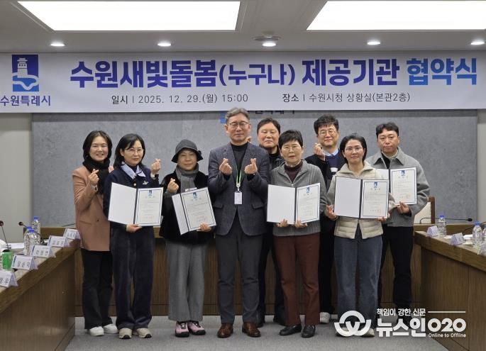 (뉴스인020 = 기자) 수원특례시이 29일 시청 상황실에서 ‘수원새빛돌봄(누구나) 서비스 제공기관 재협약 협약식’을 열고, 서비스 제공기관들과 재협약을 체결했다.