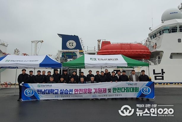 (뉴스인020 = 김성길 기자) 전남대학교 수산해양대학(학장 서호영)은 지난 24일 여수 신북항에서 선박실습센터 및 실습선 교직원들이 참석한 가운데, 실습선의 안전 운항과 승선자의 무사 안녕을 다짐하는 ‘전남대학교 실습선 안전기원제 및 안전 다짐 대회’를 개최했다.