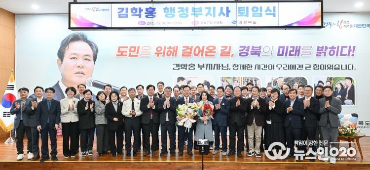 (뉴스인020 = 김성길 기자) 김학홍 경상북도 행정부지사가 30일 도청에서 퇴임식을 갖고, 3년 2개월간의 행정부지사 임기를 끝으로 33년간의 공직 생활을 마무리했다.