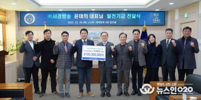 (뉴스인020 = 김성길 기자) 경상국립대학교 12월 30일 오전 11시 대학본부 3층 접견실에서 ㈜서경방송의 대학발전기금 전달식을 개최했다.