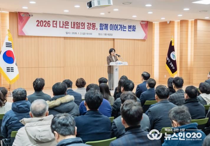 (뉴스인020 = 김성길 기자) 서울 강동구는 1월 2일 구청 대강당에서 2026년 새해를 맞아 시무식을 열고, 새해 구정 운영 방향과 공직자로서의 역할과 자세를 공유했다.