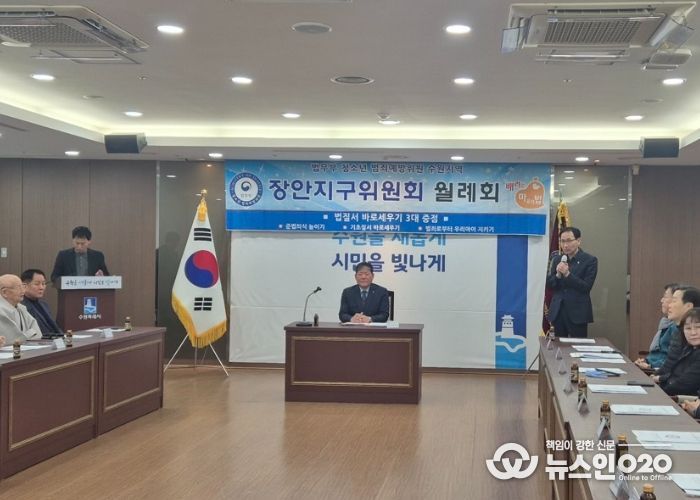 이날 회의에는 법무부 청소년 범죄예방위원 장안지구위원회 30여 명이 참석한 가운데, 2025년도 청소년 선도 캠페인을 포함한 주요 사업 및 활동 성과 보고를 진행했으며 2026년도 활동 계획과 지역사회 발전 방향에 대해 논의하는 시간을 가졌다.