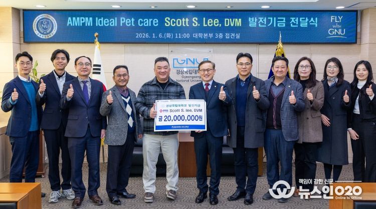 (뉴스인020 = 김성길 기자) 경상국립대학교는 미국 ‘AMPM Ideal Pet Care(에이엠피엠 아이디얼 동물병원)’의 이시경(Scott S. Lee) 원장이 대학발전기금 2000만 원을 기부했다고 밝혔다.