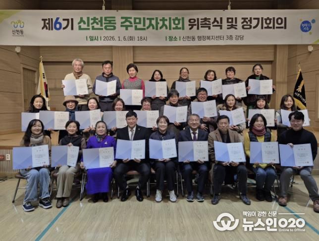 한편, 제6기 신천동 주민자치회 위원의 임기는 2026년 1월 1일부터 2027년 12월 31일까지 2년간이다. 주민자치회는 이번 위촉식을 시작으로 분과 구성을 마무리한 뒤, 다양한 사업을 추진해 주민자치의 모범 사례를 만들어 갈 계획이다.
