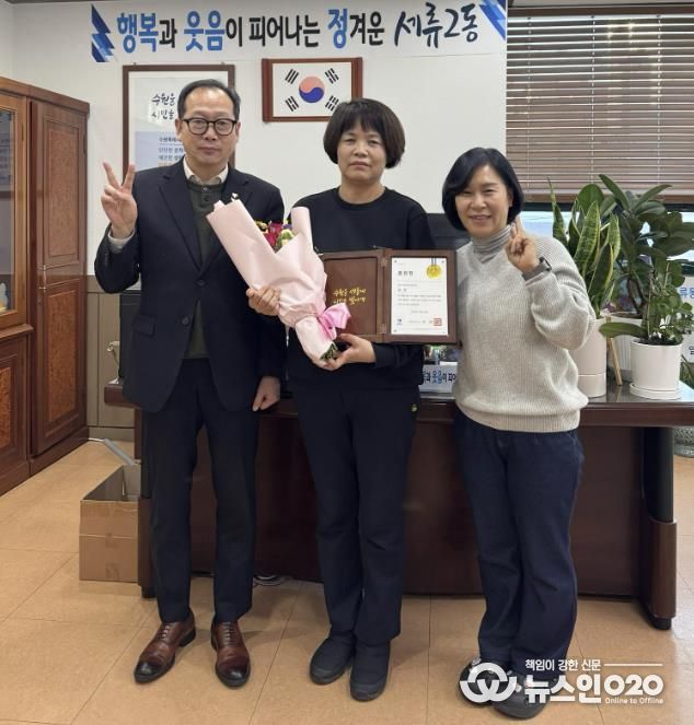 (뉴스인020 = 기자) 수원시 권선구 세류2동은 지난 7일, 청소년 선도·보호 활동 및 청소년 유해환경 근절을 위해 노력한 김현 청소년 지도위원에게 수원시장 표창장을 전수했다.