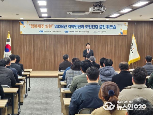 (뉴스인020 = 김성길 기자) 제주특별자치도는 7일 오후 제주도청 자유실에서 도 안전건강실과 행정시 안전총괄과, 도내 6개 보건소 관계자 등 100여 명이 참석한 가운데 ‘더 안전하고 건강한 제주, 전 도민이 누리는 행복제주 실현 워크숍’을 개최했다.