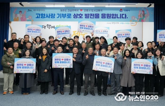 (뉴스인020 = 김성길 기자) 제주특별자치도 건설주택국은 강릉시청 도시교통국과 함께 고향사랑기부제를 통한 지역 상생협력 실천을 위해 양 지자체 간 상호 교차 기부를 추진한다고 밝혔다.