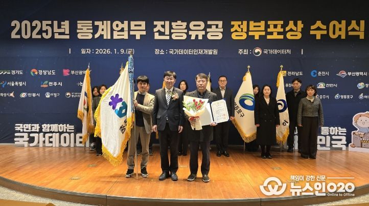 (뉴스인020 = 김성길 기자) 충북도가 국가데이터처가 주관하는 ‘2025년 통계업무 진흥유공 포상’에서 우수기관으로 선정돼 국무총리 표창을 수상했다.