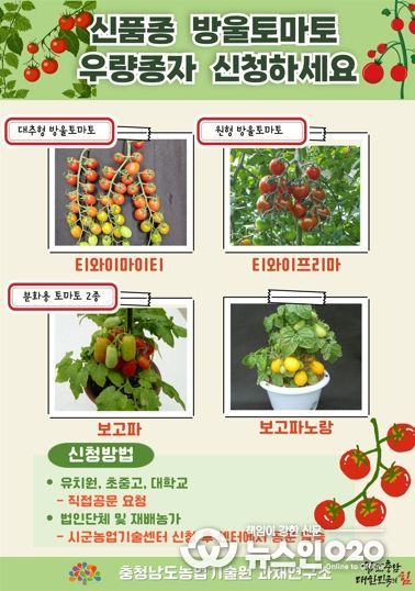(뉴스인020 = 김성길 기자) 충남도 농업기술원은 재배농가와 교육기관을 대상으로 신품종 방울토마토 우량종자 4종 10만립을 공급한다고 11일 밝혔다.
