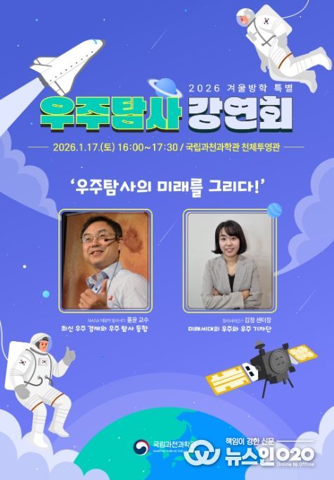(뉴스인020 = 김나현 기자) 과학기술정보통신부 국립과천과학관은 1월 17일, 겨울방학을 맞이한 학생과 시민들을 위해 우주 시대를 설계해보는 특별 강연회 '우주 탐사의 미래를 그리다'를 천체투영관에서 개최한다고 밝혔다.