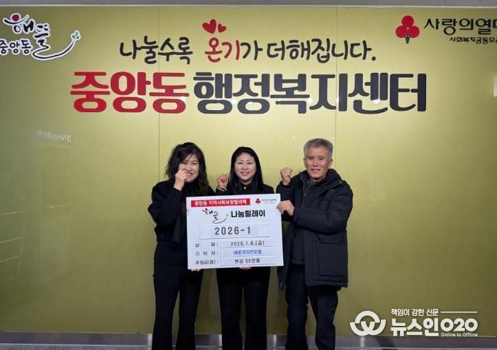 이번 기탁은 중앙동에서 추진 중인 ‘해뜰릴레이’의 첫 번째 나눔으로, ‘해뜰릴레이’는 후원금과 후원품 기부자를 중심으로 릴레이 형식의 나눔을 이어가며 기부 문화 확산과 지속적인 이웃사랑 실천을 도모하는 사업이다. 특히 이번 후원은 2026년 병오년 새해를 여는 첫 해뜰릴레이로, 지역사회에 따뜻한 나눔의 의미를 더했다.