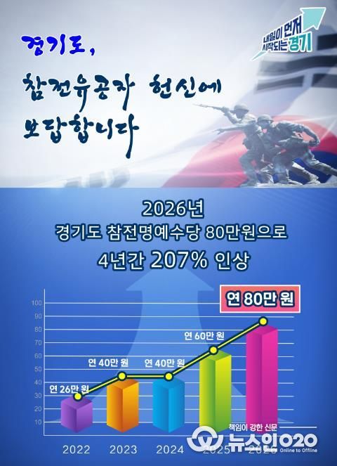 (뉴스인020 = 김성길 기자) 경기도가 참전유공자에 대한 예우를 강화하기 위해 2026년 경기도 참전명예수당을 연 80만 원으로 인상했다.