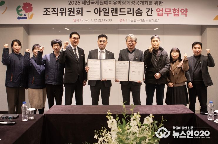 (뉴스인020 = 김성길 기자) 태안국제원예치유박람회 조직위원회는 1월 12일 태안군 안면읍 아일랜드 리솜에서 조직위와 아일랜드 리솜이 업무협약을 체결했다고 밝혔다.