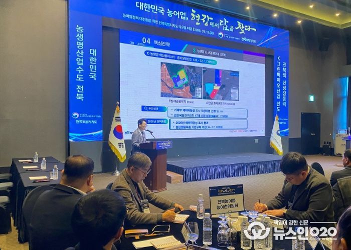 (뉴스인020 = 김성길 기자) 전북특별자치도가 13일 대통령 직속 농어업·농어촌특별위원회와 공동으로 '대한민국 농어업, 현장에서 답을 찾다'를 주제로 전북 지역 농어업 대전환 설명회를 열었다. 전북은 농특위가 9개 광역도를 순회하며 진행하는 이번 설명회의 올해 첫 방문지다.