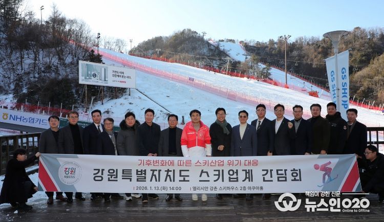 (뉴스인020 = 김성길 기자) 강원특별자치도는 1월 13일 오후 2시, 춘천 엘리시안 강촌에서 김진태 도지사 주재로 도내 스키장 경영책임자들과 함께 ‘기후변화에 따른 스키 산업 위기 대비 간담회’를 개최했다.