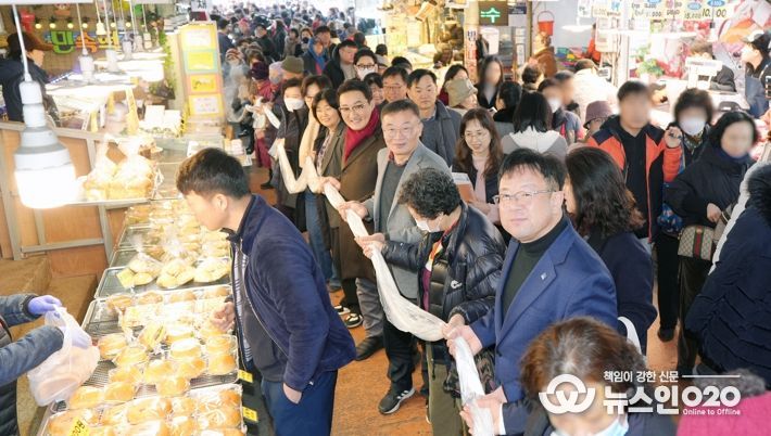 (뉴스인020 = 기자) 수원 못골종합시장이 새해를 맞아 16일 전통시장 상인과 시민이 함께하는 ‘가래떡 나눔 행사’를 열었다.