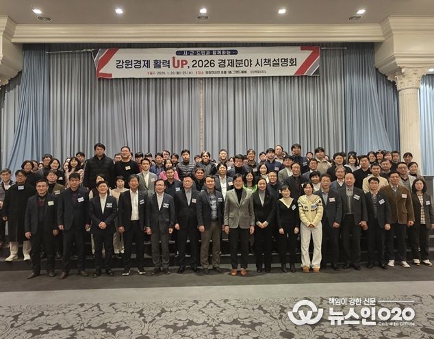 (뉴스인020 = 김성길 기자) 강원특별자치도 경제국은 도·시군 및 유관기관 간 정책 공감대 형성과 지역경제 대응력 강화를 위해 1월 20일부터 21일까지 1박 2일간, 평창 켄싱턴호텔과 평창송어축제장 일원에서 '2026년도 경제 시책 설명회'를 개최했다.
