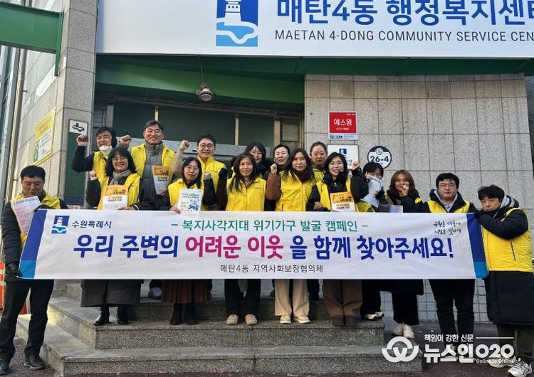 (뉴스인020 = 기자) 수원시 영통구 매탄4동 지역사회보장협의체는 지난 20일 인근 주민과 상인들을 대상으로 ‘동절기 복지사각지대 해소를 위한 현장 캠페인’을 실시했다.