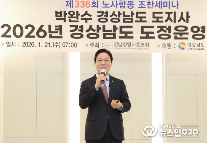 (뉴스인020 = 김성길 기자) 경상남도는 21일 오전 창원 인터내셔널호텔에서 열린 ‘제336회 노사합동 조찬세미나’에서 도정 비전과 주요 정책 방향을 공유했다.