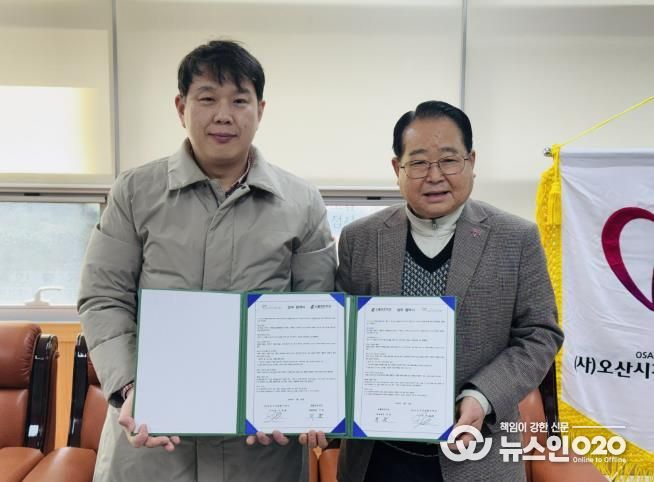 (뉴스인020 = 김성길 기자) (사)오산시자원봉사센터는 지난 20일 센터 2층 이사장실에서 곰플란트치과와 지역사회 자원봉사 활성화 및 자원봉사자 복지 증진을 위한 업무협약(MOU)을 체결했다고 밝혔다.