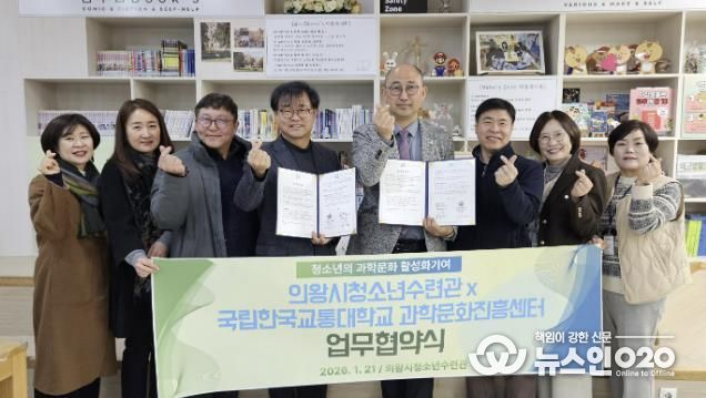 (뉴스인020 = 김성길 기자) 의왕시청소년재단 산하 의왕시청소년수련관 청소년방과후아카데미(문화공원로 33)가 1월 21일 국립한국교통대학교 과학문화진흥센터와‘의왕시 청소년의 과학문화 활성화와 지역사회 상생발전 기여를 위한 업무협약’을 체결했다.