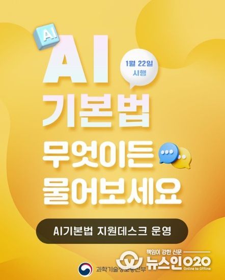 (뉴스인020 = 김나현 기자) AI 산업 진흥 기반을 조성하기 위한 '인공지능기본법'이 1월 22일 시행됩니다.