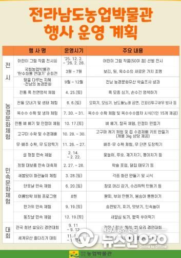 김옥경 전남농업박물관장은 “2026년은 박물관이 농업과 문화를 잇는 융합 플랫폼으로 한 단계 더 나아가는 해가 될 것”이라며 “단순히 농경문화의 가치를 지키는 데 그치지 않고, 오늘의 일상에서 새롭게 살아 숨 쉬게 하는 것이 박물관의 역할”이라고 말했다. 이어 “전통의 뿌리를 바탕으로 미래를 준비하는 ‘열린 K-헤리티지 박물관’으로서 지역민과 방문객 모두가 전남 농경문화의 가치와 매력을 함께 느끼도록 힘쓰겠다”고 강조했다.