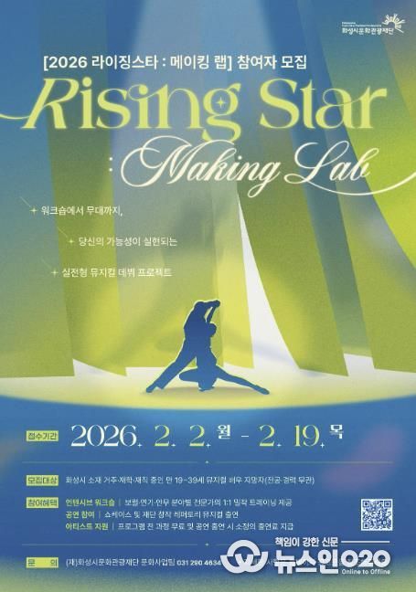 (뉴스인020 = 김성길 기자) (재)화성시문화관광재단은 뮤지컬 분야의 신진 인재를 발굴하고 육성하기 위한 ‘2026 라이징스타: 메이킹 랩’의 오디션 참가자를 모집한다.