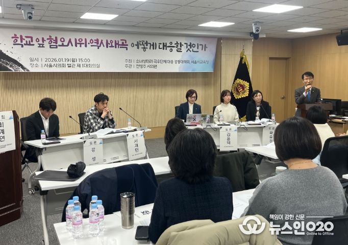 (뉴스인020 = 김성길 기자) 학교 앞에서 벌어지는 혐오시위와 역사왜곡이 교육 현장을 위협하는 가운데, 공교육의 역할과 제도적 대응 방안을 모색하는 토론회가 서울시의회에서 열렸다.